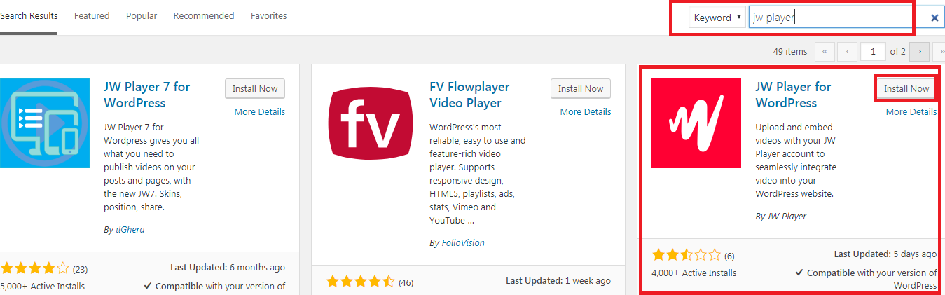 2. Pada kotak pencarian ketikkan nama plugin “jw player 6”