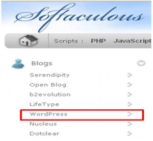 4. Ketika telah muncul halaman softaculous, untuk menu nya pada bagian kiri ada menu list aplikasi yang terlihat silakan di pilih untuk sesuai kebutuhan kita, jika WordPress itu ada di menu Blogs arahkan saja cursor ke blogs nanti akan muncul beberapa pilihan. Dan carilah untuk WordPress lalu klik.