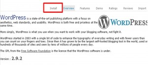 5. Jika telah muncul halaman untuk WordPress lihat lah di menu bagian atas sebelah kanan, cari INSTALL lalu klik.