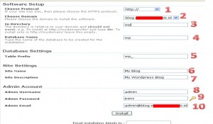 - In Directory, secara default telah terisi wp. Ini bisa menggantinya dan mengosongkannya. Jika tidak menghapus wp, Softaculous akan membuat direktori baru yang bernama wp dan menginstal script WordPress di dalamnya. Jika itu terjadi, maka untuk mengakses web anda nantinya harus mengetikkan http://namasitusanda.com/wp/index.php.
