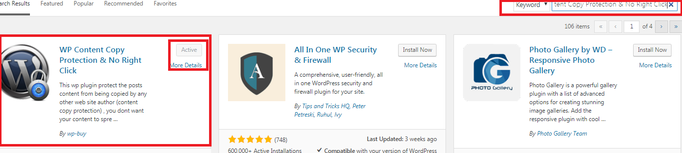 2.Ketikkan WP Content Copy Protection & No Right Click di kolom Pencarian Plugin