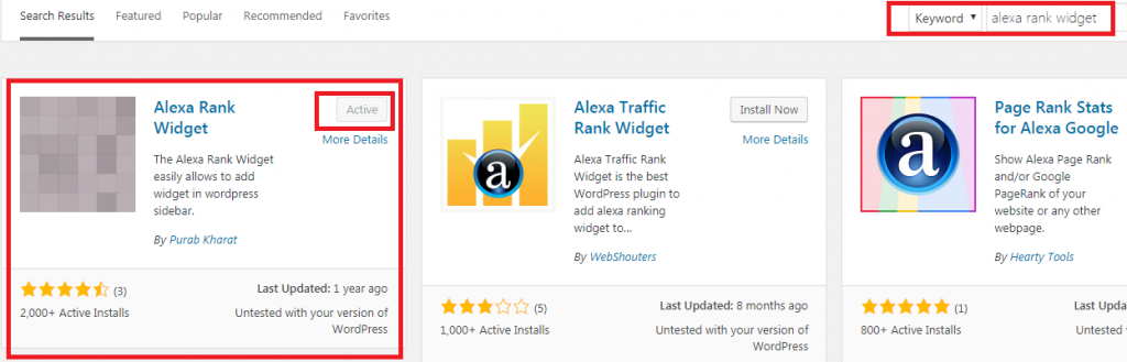 - Ketikkan alexa rank widget di kolom Pencarian Plugin