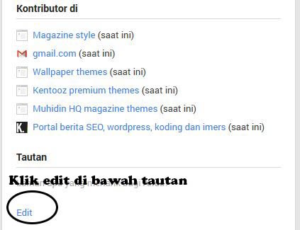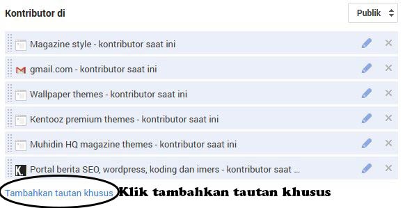 Setelah itu akan muncul jendala popup, lalu klik Tambahkan tautan khusus dibawah Kontributor di.
