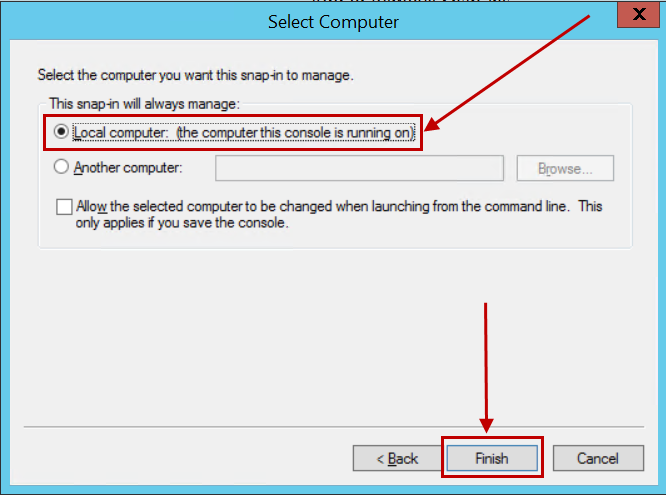 - Pilih Computer account, klik Next, lalu Finish.