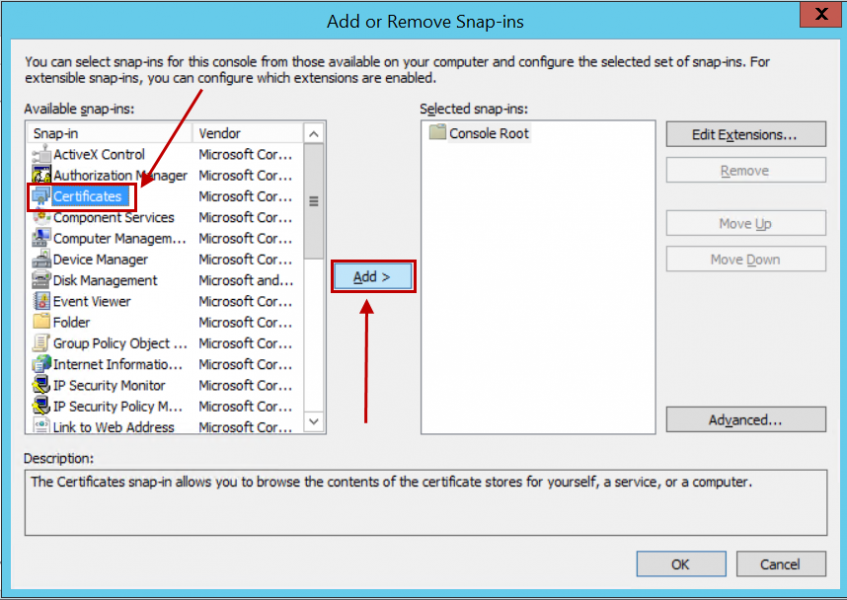 2.Tambahkan Snap-in Sertifikat: