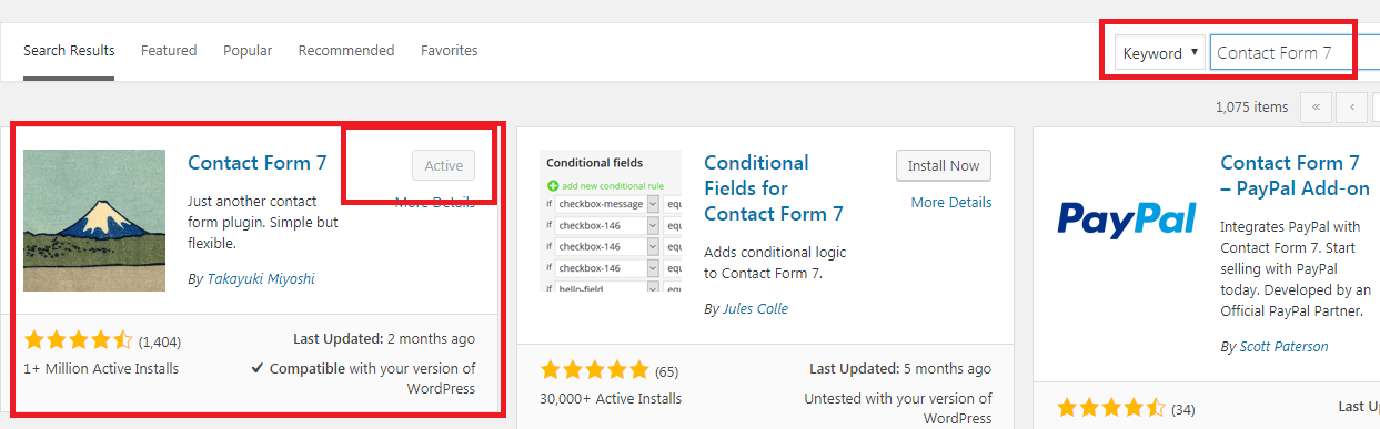 - Ketik “contact form 7” pada kolom pencarian