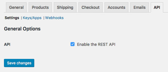Dan terakhir di tab “API” Anda dapat mengaktifkan API REST, Keys / Apps, dan Webhooks.