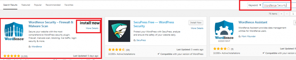 2.Ketikkan Wordfence Security di kolom Pencarian Plugin
