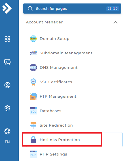 - Di dalam menu Account Manager, cari dan klik ikon “Hotlink Protection”.