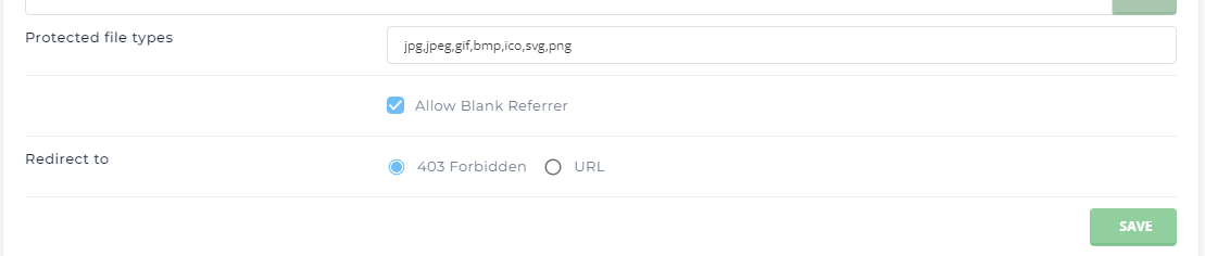 - Protected file types: Tentukan jenis file yang ingin Anda lindungi (misalnya: .jpg, .png, .gif, .mp4).