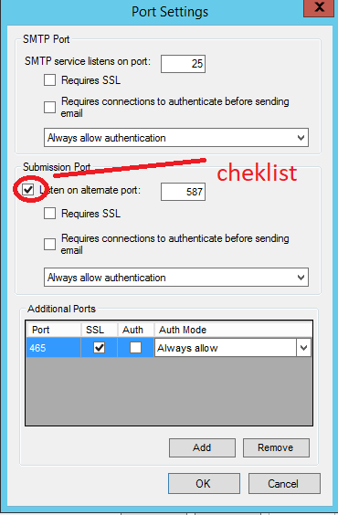 5.dan ceklist Listen on alternate port: 587 and click OK.