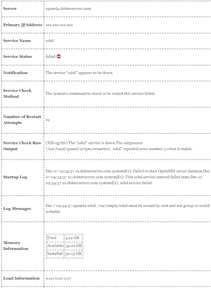 Cara Mengatasi Notifikasi Error WHM CPanel SSHD pada Direktori /var/empty/sshd