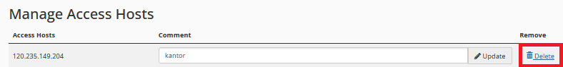 - Klik Delete jika Anda ingin menghapus alamat IP atau host yang tidak lagi memerlukan akses ke database.