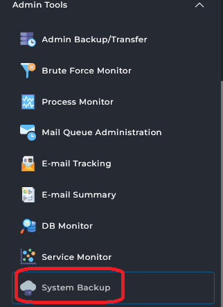 - Pilih “System Backup” dari menu yang muncul di bawah Admin Tools.