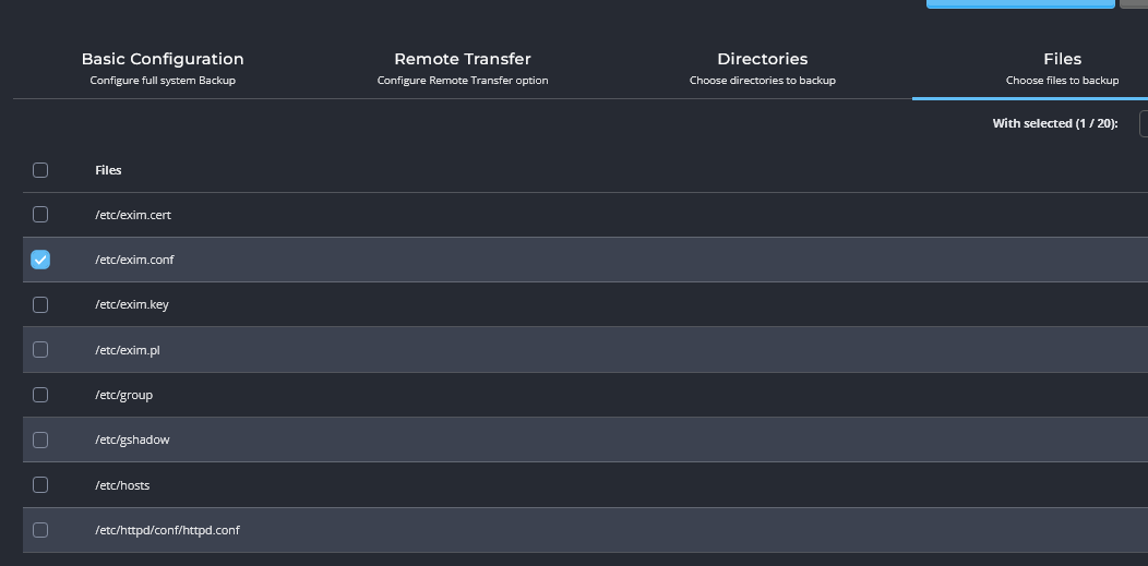 - User Files: Pilih file yang terkait dengan akun pengguna yang perlu dibackup.