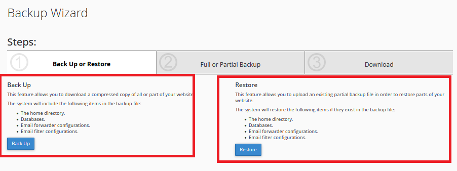 Langkah-langkah Menggunakan Backup Wizard di cPanel