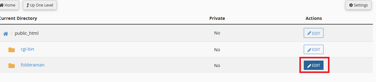 - Klik pada nama folder tersebut untuk memilihnya, kemudian klik “Edit” atau “Protect this Directory”.