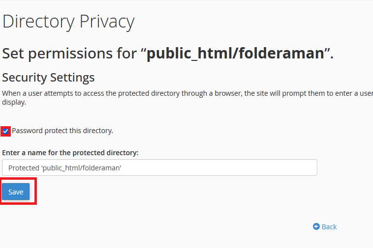 - Di halaman berikutnya, Anda akan melihat opsi untuk “Password Protect this Directory”.