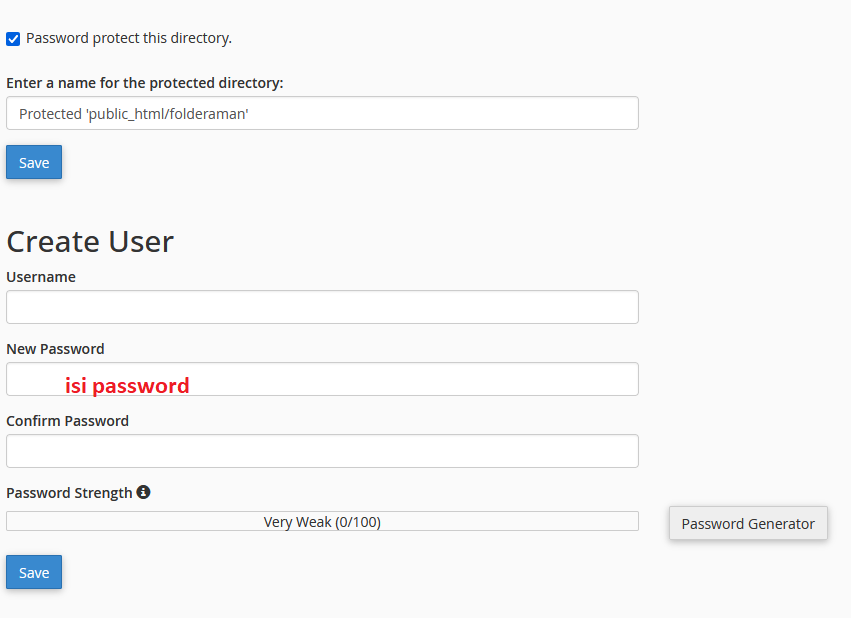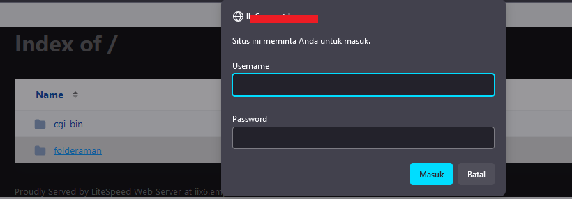 - Untuk memeriksa apakah proteksi password sudah diterapkan, coba buka folder yang diproteksi melalui browser (misalnya: http://yourdomain.com/namafolder/).