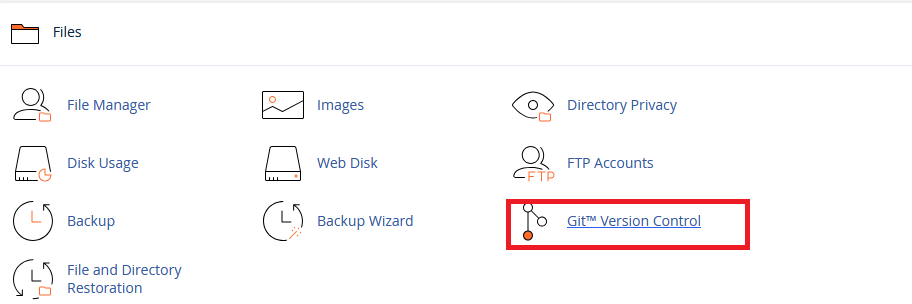 Setelah masuk ke cPanel, cari dan klik ikon Git™ Version Control yang terletak di bagian “files“.