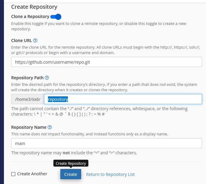 Itulah cara dasar menggunakan Git™ Version Control melalui cPanel. Jika Anda memiliki masalah atau perlu penyesuaian lebih lanjut, pastikan untuk memeriksa dokumentasi cPanel atau hubungi penyedia hosting Anda.