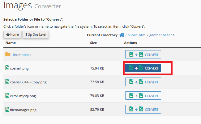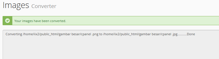 - Setelah itu, cPanel akan mengonversi semua gambar dalam folder tersebut ke format baru secara otomatis. Anda dapat mengonversi gambar dalam jumlah besar dengan cepat tanpa harus menggunakan perangkat lunak pengedit gambar lain.