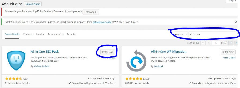 Anda dapat memilih plugin yang terbaik untuk Anda. Karena dalam pencarian dalam hasil pencarian yang di tampilkan terdapat nama yang hampir mirip dan Anda harus melihat rating dan jumlah orang yang menggunakan plugin tersebut, jika Anda sudah yakin dengan plugin tersebut selanjutnya klik tombol ‘Install Now‘.