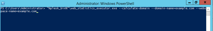 "%plesk_bin%"\web_statistics_executor.exe --calculate-domain --domain-name=example.com --webspace-name=example.com