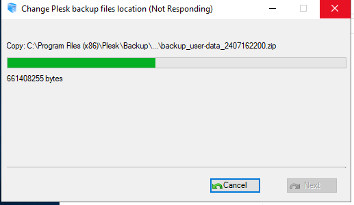 dan tunggu proses Semua data cadangan yang ada akan ditransfer ke lokasi baru juga. Selama operasi ini Plesk akan dihentikan