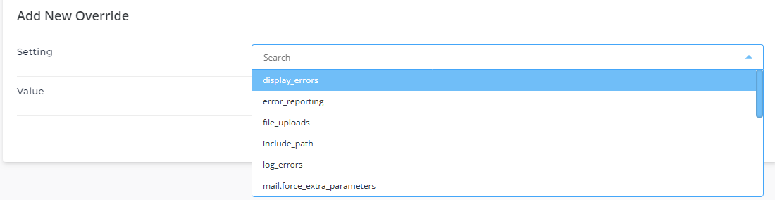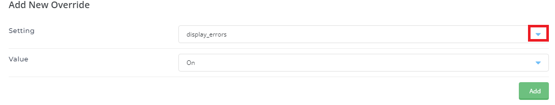 - Di bagian pengaturan PHP di bagian Add New Override , Anda dapat mengonfigurasi berbagai parameter seperti: