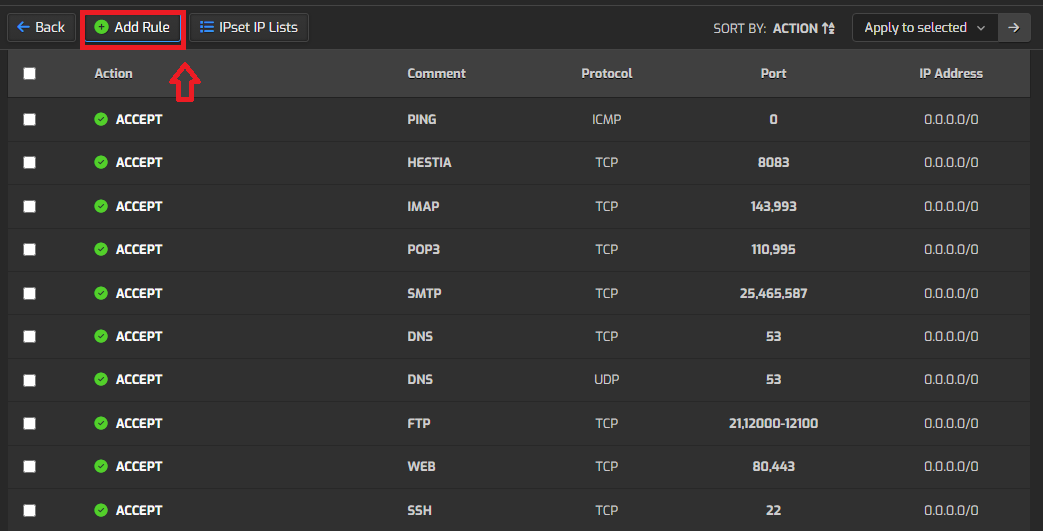 Setelah itu, Hestia secara otomatis akan menambahkan port baru ke firewall dan memperbolehkan akses ke port tersebut.