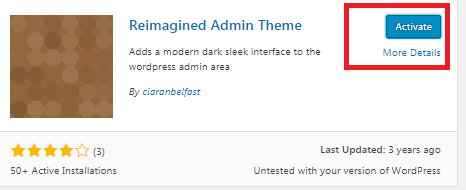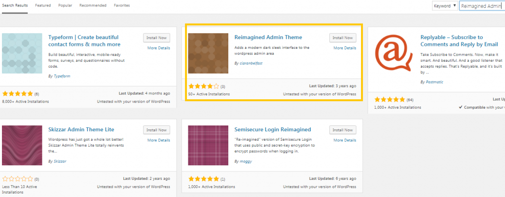 2.Ketikkan Reimagined Admin di kolom Pencarian Plugin