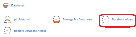- Klik ikon Database Wizard yang tersedia di bagian Databases. Ini akan membawa Anda ke halaman untuk membuat dan mengonfigurasi database.