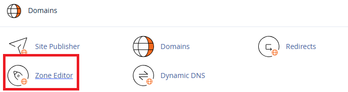 - Di bagian “Domains”, cari dan klik “Zone Editor”. Di dalamnya, Anda akan menemukan pengaturan DNS untuk domain yang Anda kelola.