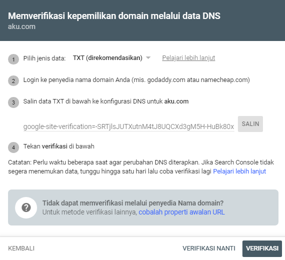 Langkah 3: Verifikasi Kepemilikan Website