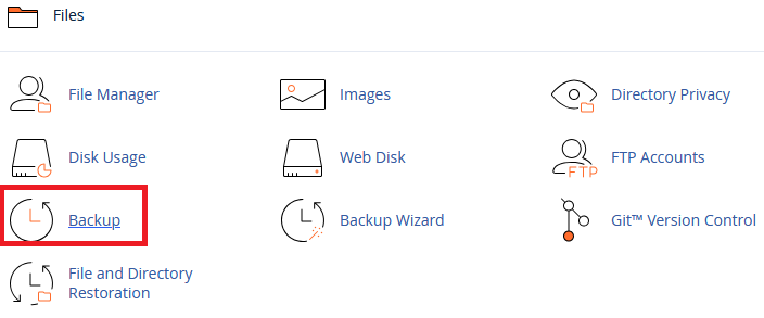 - Setelah berhasil login, cari dan klik ikon Backup yang biasanya terletak di bagian Files pada halaman utama cPanel.