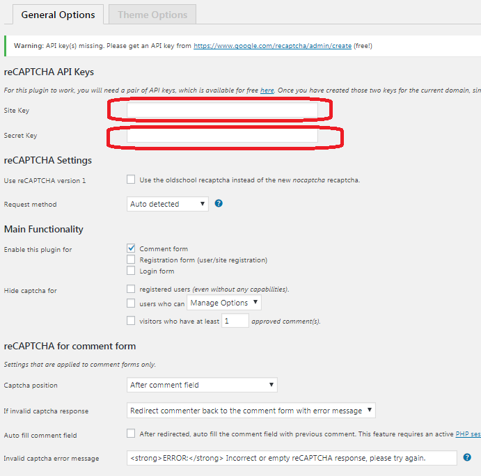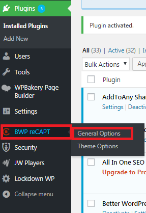 4.setelah aktif bisa melakukan setting di menu BMP reCAPT>General Options