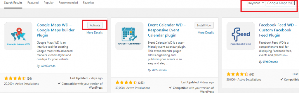 2.Ketikkan Google Maps WD di kolom Pencarian Plugin