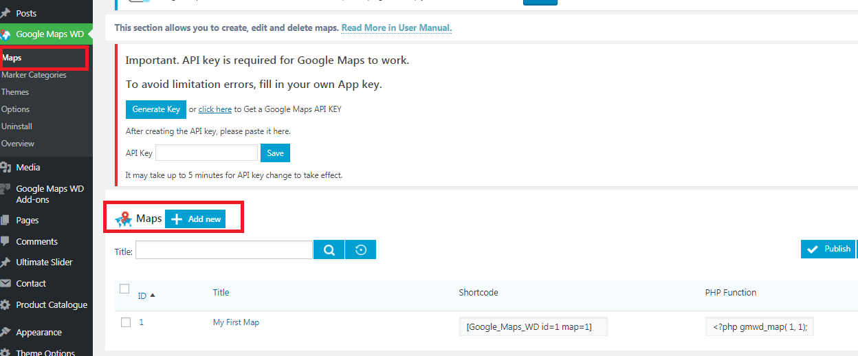 5..Setelah aktif itu lakukan pengaturan Dashboard >Google Maps Wd>Map
