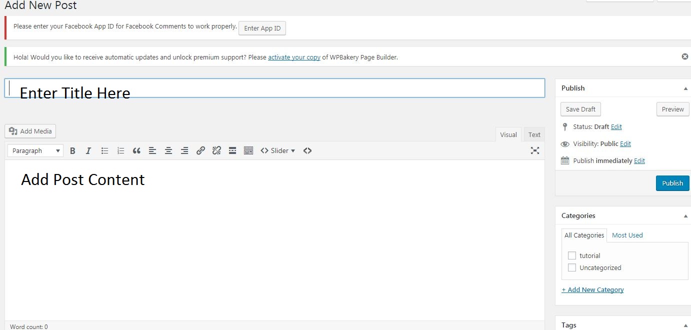 Enter Title Here -> Silahkan masukkan judul artikel anda.