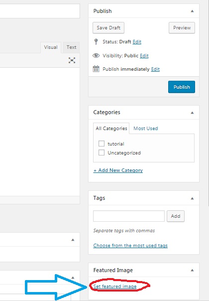 Untuk menambahkan gambar utama sebagai gambar thumbnail yang berfungsi untuk menampilkan gambar saat di bagikan di sosial media, silahkan klik Set Featured Image dan silahkan pilih gambar mana yang akan dijadikan gambar utama.