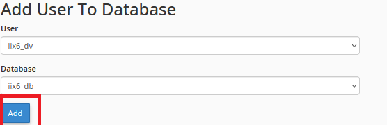 - Di bawah Add User to Database, pilih pengguna yang baru saja Anda buat dari dropdown User.