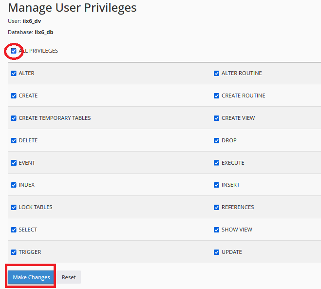 - Anda akan diberikan pilihan untuk memberikan hak akses (privileges) kepada pengguna: