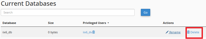 - Di bawah Current Databases, cari database yang ingin dihapus.