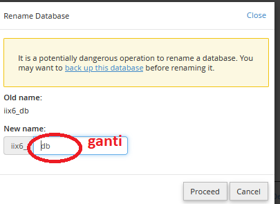 Jika Anda ingin mengganti nama database, ikuti langkah berikut: