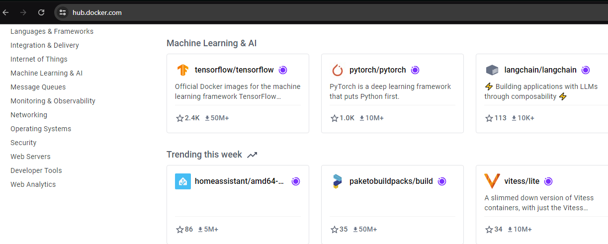 Selanjutnya adalah docker hub. Ia adalah registry yang berisikan kumpulan dari image-image. Dengan menggunakan docker hub ini kamu dapat mengumpulkan image. Hub ini berbeda dengan docker engine yang hanya membuat image. -